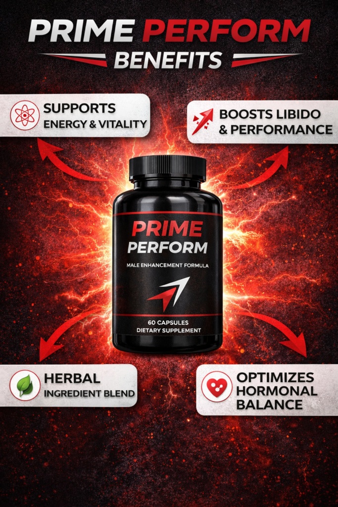 Prime Perform is a natural male enhancement and vitality supplement designed to support men’s overall performance, energy, stamina, and intimate health. It’s marketed as a daily dietary formula meant to help men feel more energized, confident, and active in both daily life and intimate moments by combining a blend of plant-derived extracts and minerals traditionally associated with male wellness.